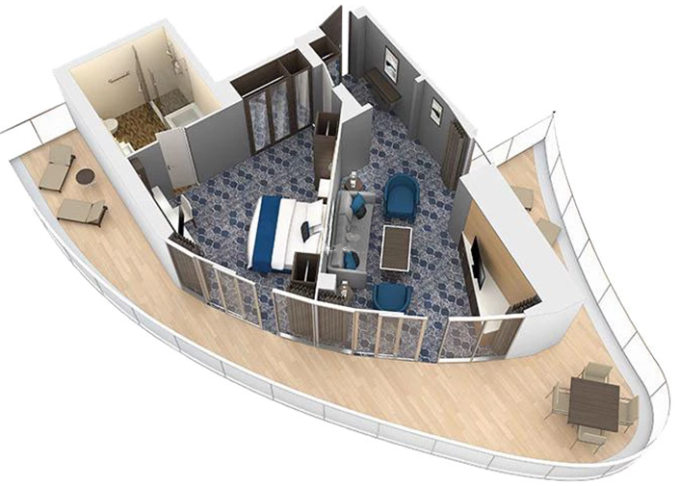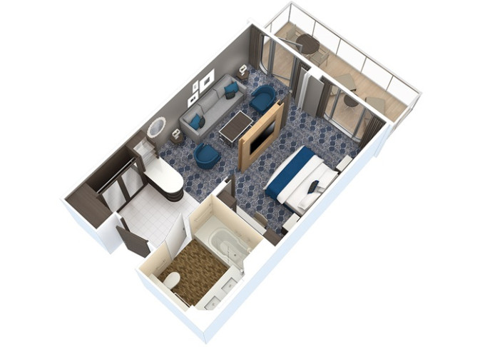 | GS - Grand Suite s balkónom 34,5 m² + balkón 10 m². 6. až 14. paluba. Max 4 osoby. Výhody Royal Suite Sky Class. | 6 320 € 3 160 € za osobu | ||