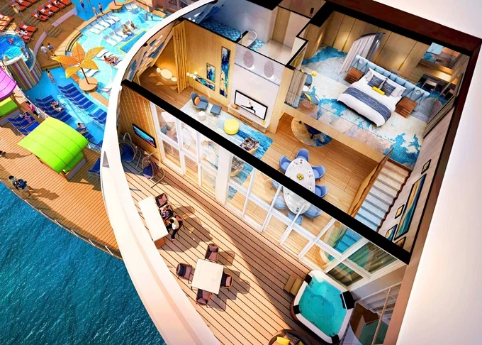 RL - Royal Loft Suite 141 m² + balkón s vírivkou 78 m². 2-podlažný apartmán. 18. paluba. Max 6 osôb. Výhody Royal Suite Star Class. 10 432 € 2 608 € za osobu